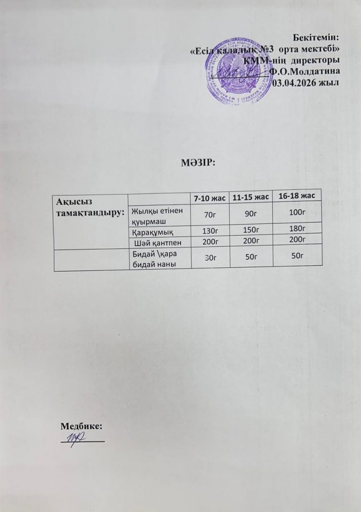 школа № 3 города Есиль отдела образования по Есильскому району