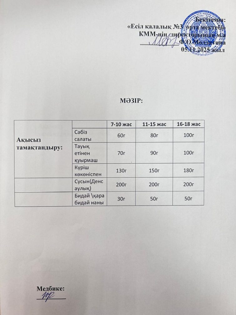 Ас мәзірі 05.11.2025 ж
