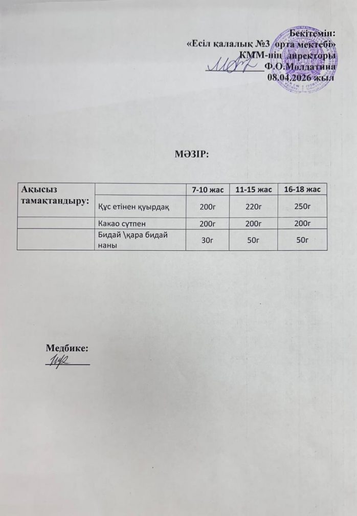 школа № 3 города Есиль отдела образования по Есильскому району