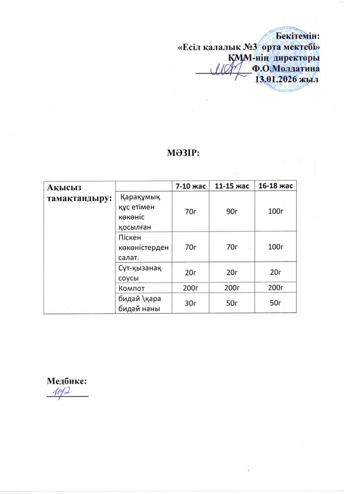 Ас мәзірі 13.01.2026 ж