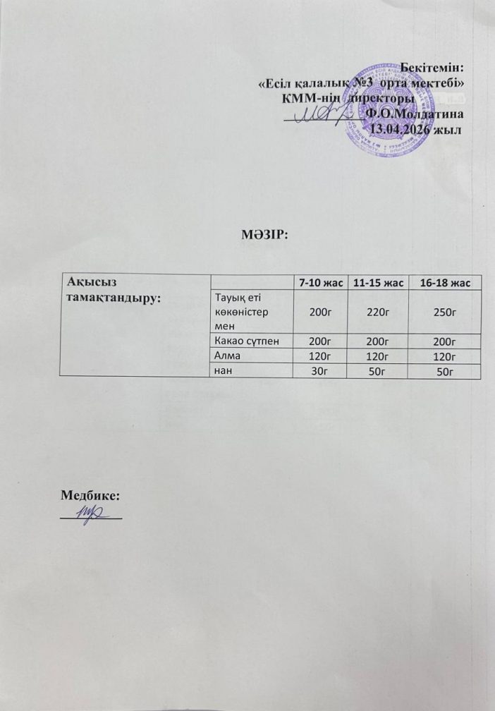 школа № 3 города Есиль отдела образования по Есильскому району