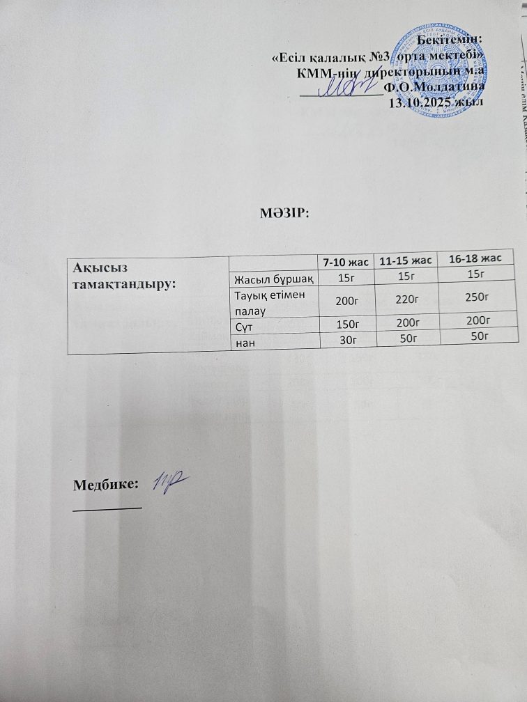Ас-мәзірі 13.10.2025 ж