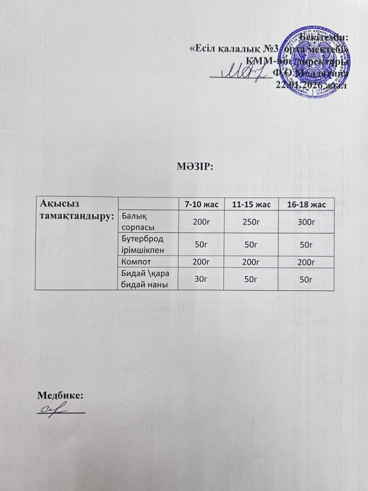 Ас мәзірі 22.01.2026 ж