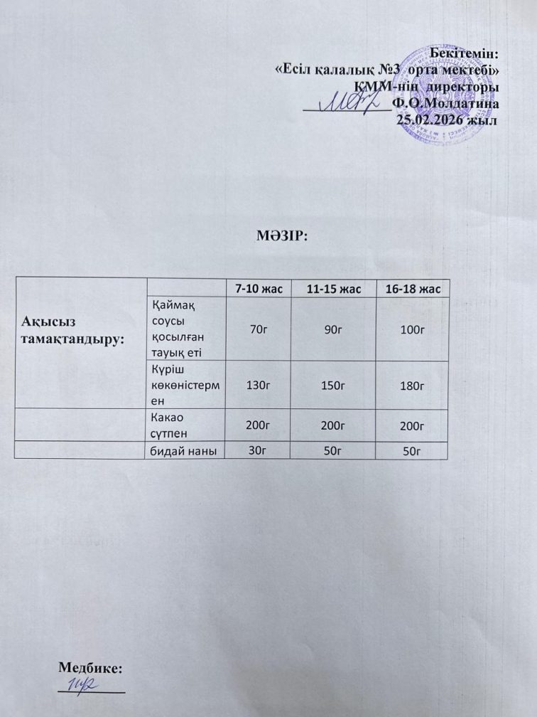 Ас мәзірі 25.02.2026 ж