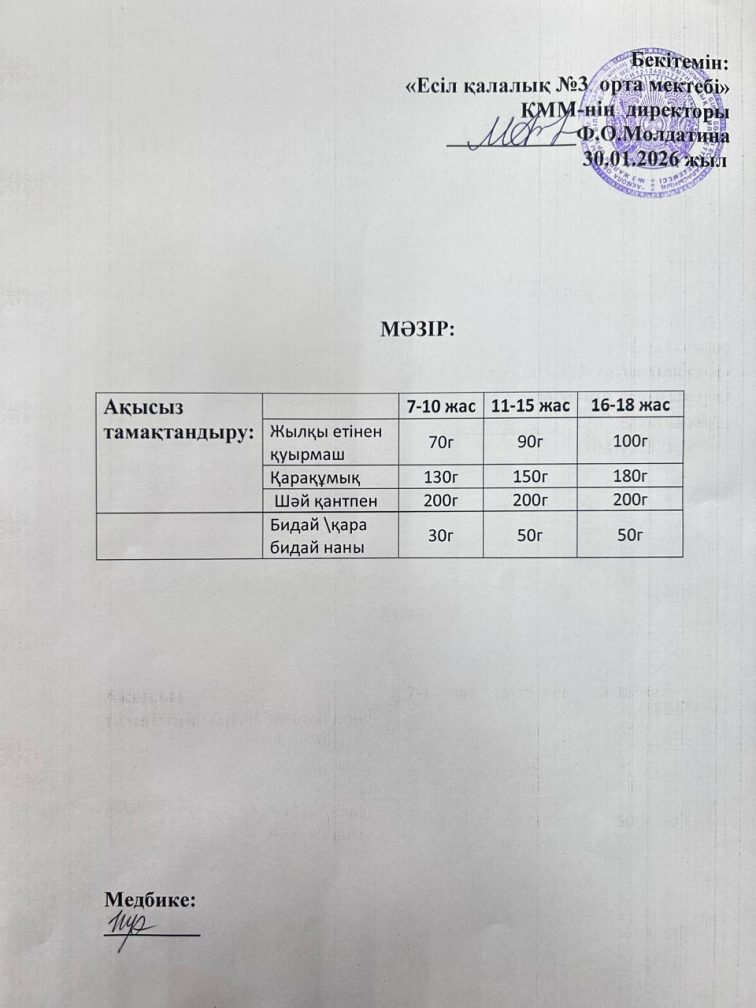 Ас мәзірі 30.01.2026 ж